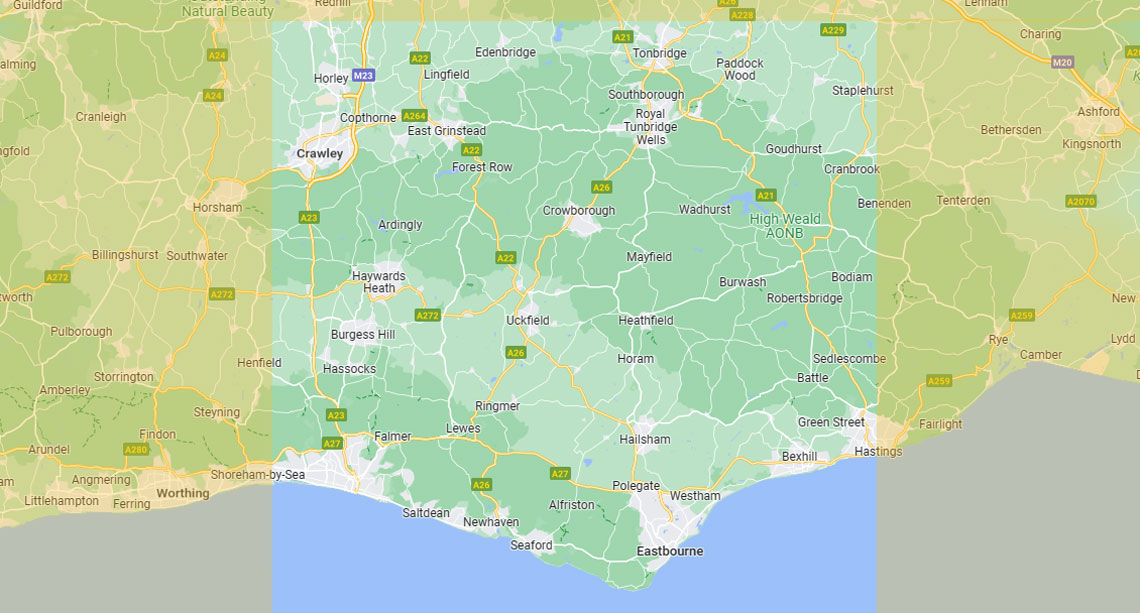 East Sussex - Burwash, Chailey, Crowborough, Danehill, Eastbourne, Five Ashes, Fletching, Forest Row, Hadlow Down, Hailsham, Hartfield,Heathfield, Horam, Isfield, Lewes, Mayfield, Newick, Ringmer, Ticehurst, Uckfield, Wadhurst.
